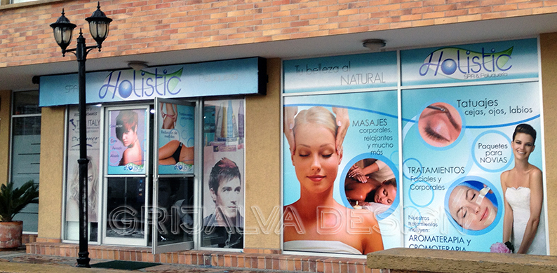 Etiquetas: diseño en Quito, murales, peluquería, rotulación, señalética, spa, vinilo adhesivo