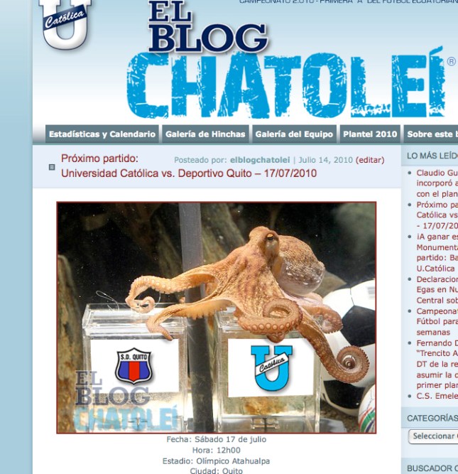 Solicitado por hinchas de U.Católica: el pulpo Paul predice partido del 17/07/2010