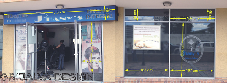 Actualmente. Viniles adhesivos y perforados, para no obstruir la luz, ni la vista desde el interior del local.